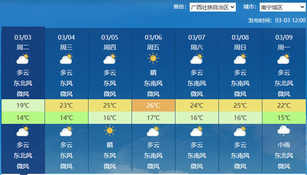 南宁明起三天气温回升。(图片来源:中央气象台)