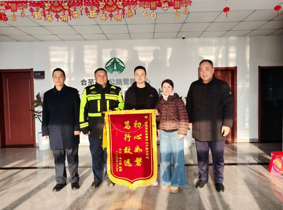 2月10日下午,安徽交控集团合芜中心严桥分中心收到驾驶员冯师傅送来的一面印有“初心如磐,笃行致远”字样的锦旗,对工作人员快速响应、跨部门协作,成功为其追回车辆损失表达由衷感谢,也定格了春运期间安徽交控人“为司乘办实事”的暖心瞬间。