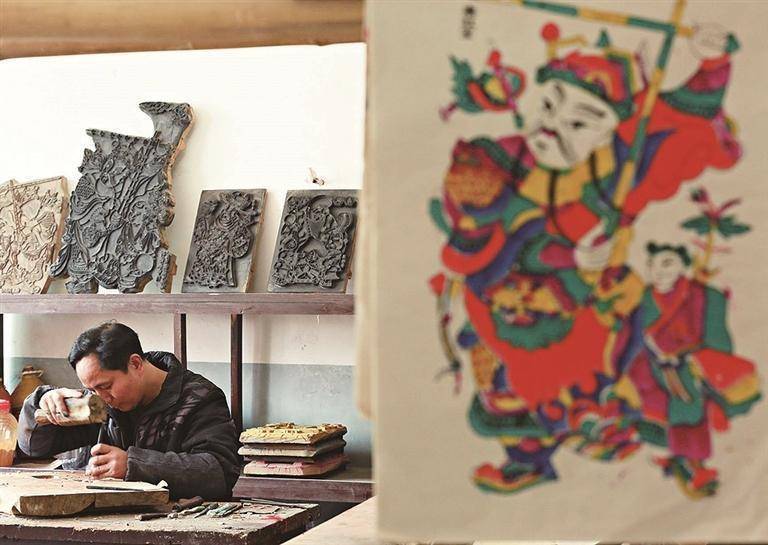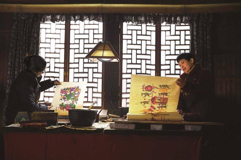 春节临近,湖南省隆回县滩头镇的年画艺人们正忙着印制滩头木版年画。滩头木版年画以其悠久的历史、鲜艳的色彩、丰富的题材和精湛的工艺自成一派,成为中国传统年画的代表之一,2006年入选第一批国家级非物质文化遗产代表性项目名录。